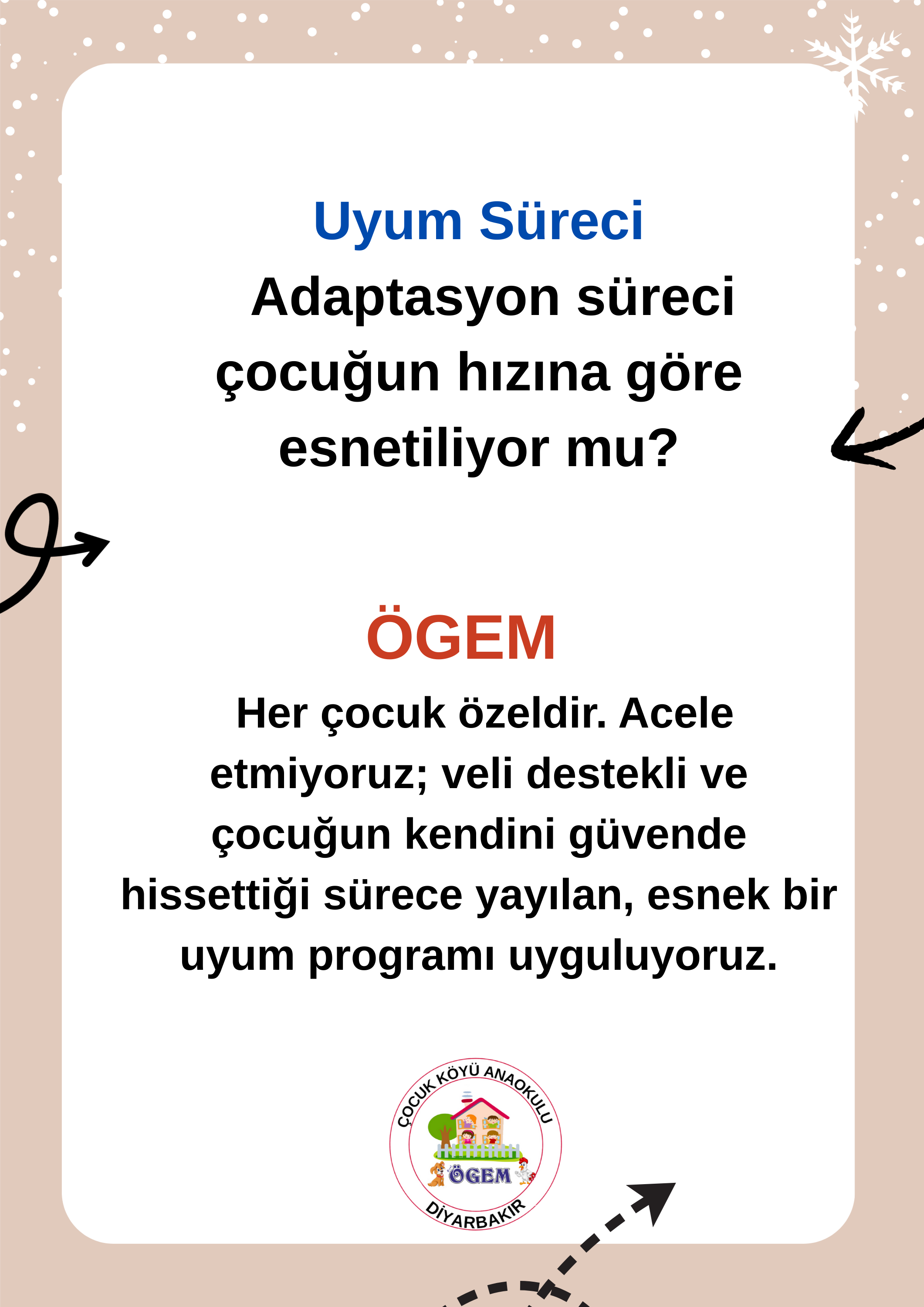 hafta sürebilir. Ögem Anaokulu’ndaki uzman eğitim kadromuz, her çocuğun bireysel ihtiyaçlarına